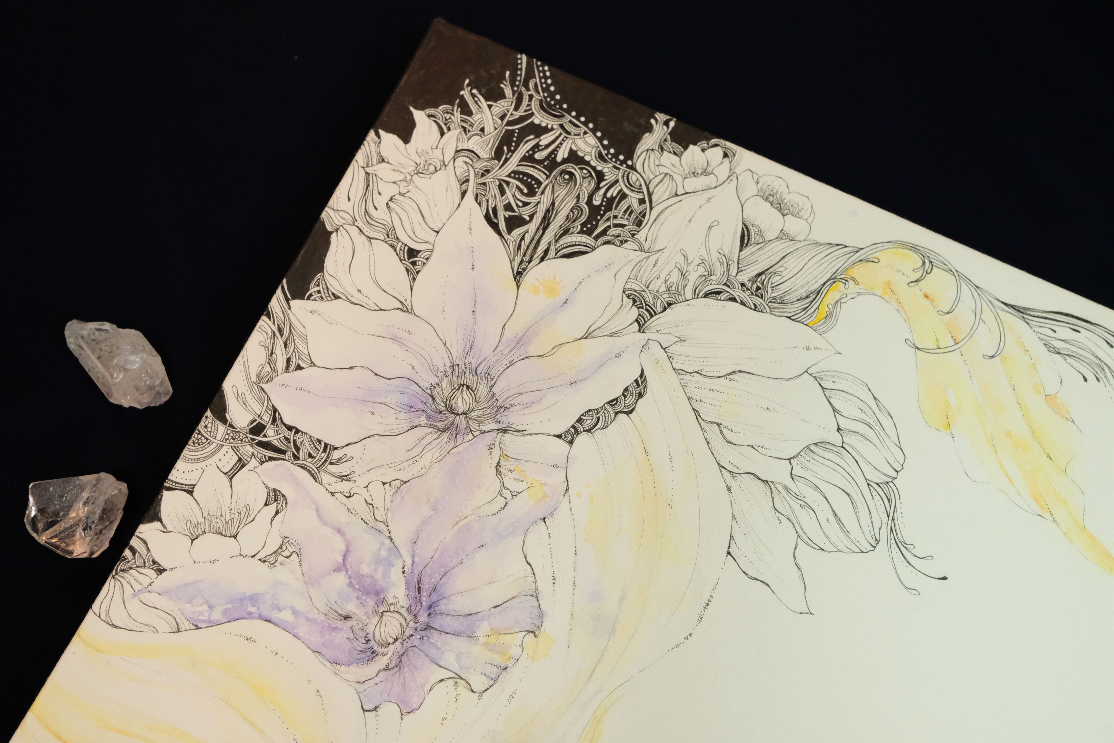 画材:透明水彩、ペン、シリウス水彩紙・ビーズ