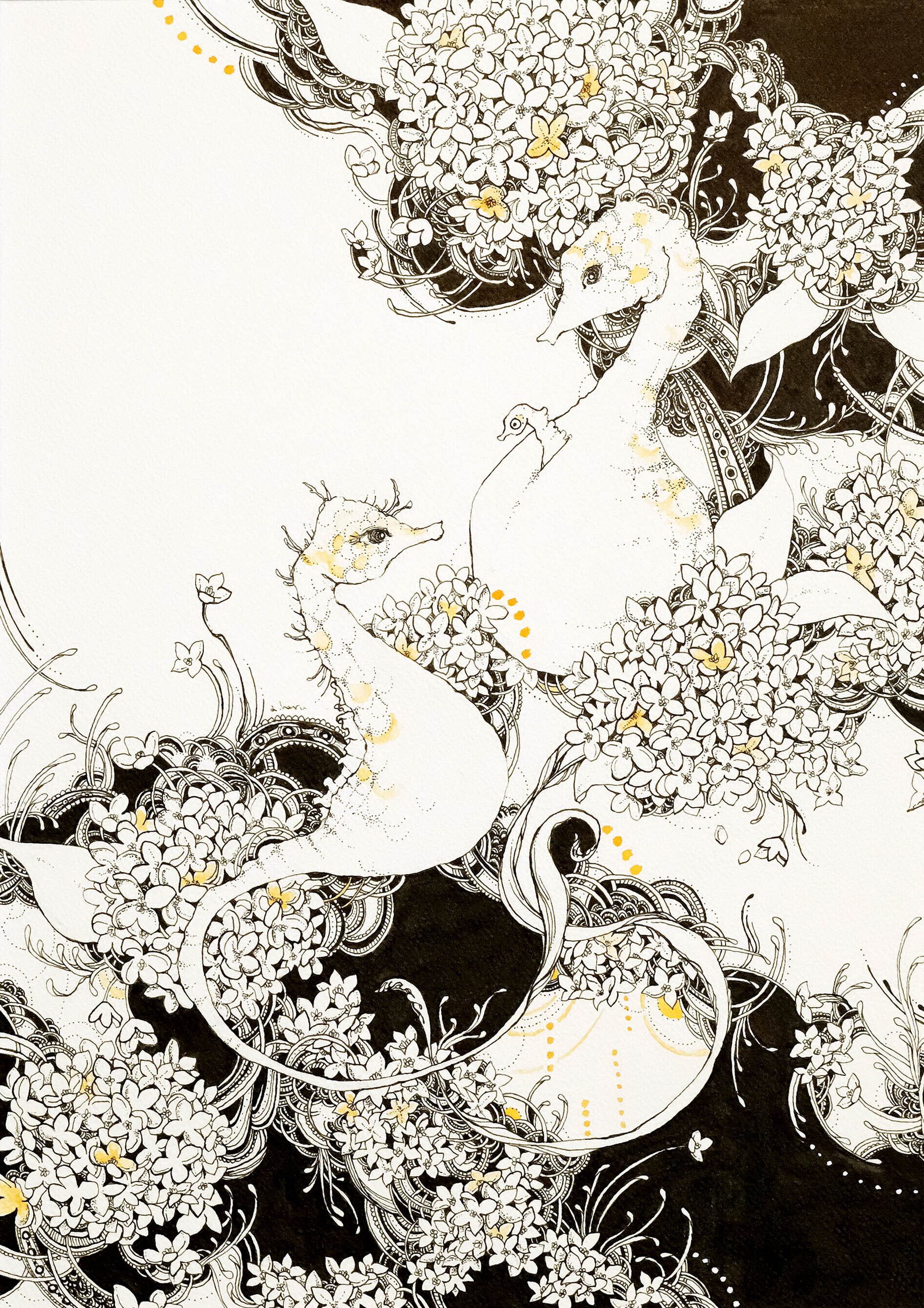 モノクロの世界に一滴(一色)だけ色を差した「ひとしずく」シリーズの1つです。